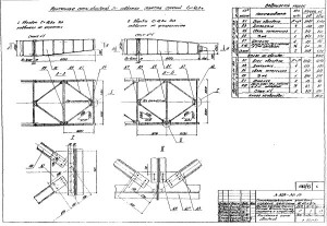 Прямые указания по строительству пролетам автодорожного моста указаны в проектной документации 3.503.50 (Выпуск 15).Документация композитной конструкции вспомогательного типа включает подробные чертежи конструкции в различных проекциях: