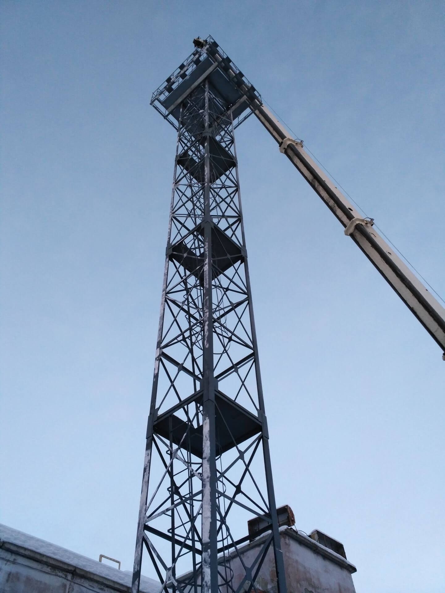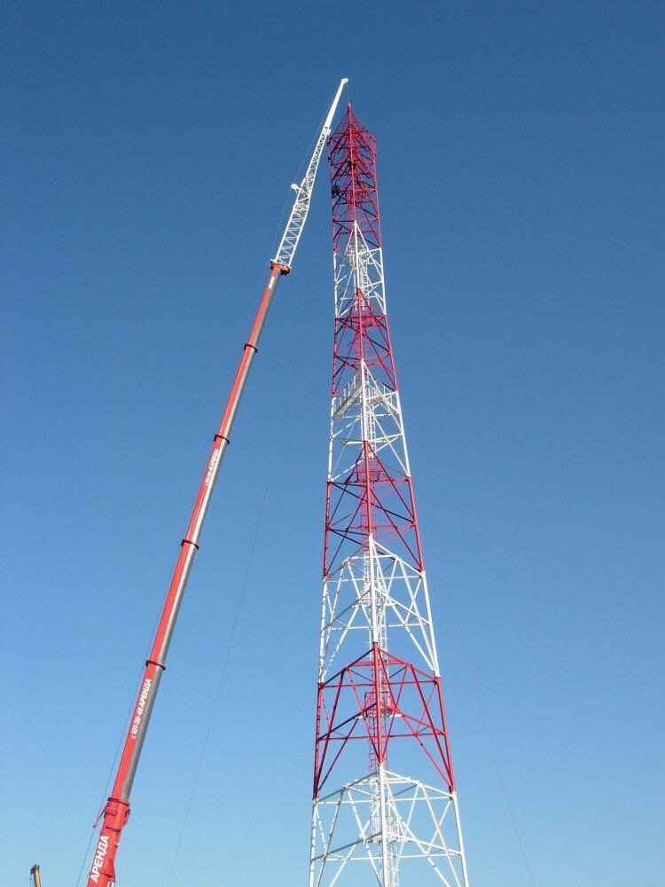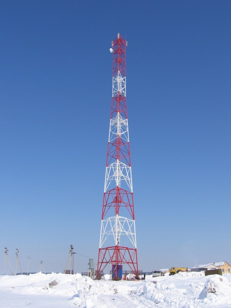 Фото изготовленных нашим заводом прожекторных мачт ПМС-28,0 в Великом Новгороде:
