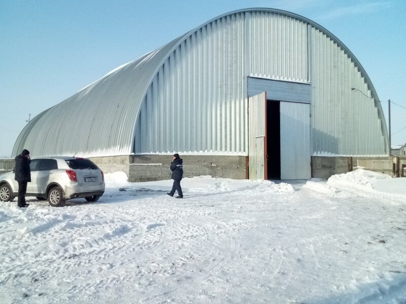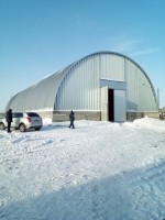 Строительство бескаркасного арочного ангара 12х30 на готовом фундаменте заказчика в Великом Новгороде